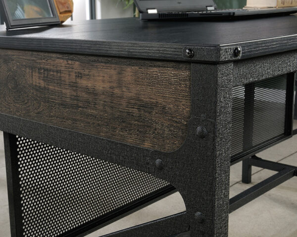 This Sauder 59″ x 30″ Commercial Office Desk is part of our Commercial Office collection. This item, SKU #428155, will make a great addition to your home. This 59″ x 30″ desk from the Foundry Road® collection is a substantial commercial office desk with a textured, powder coated metal frame and perforated metal modesty panel. This industrial office desk includes a high-wear melamine top surface which is heat, stain, and scratch-resistant and has two grommet holes to conveniently channel electrical cables. The top surface is spacious enough to hold a computer, phone, lamp, planner, calculator, and more. Impact resistant, high-grade thermoplastic edges on this melamine top desk provide enhanced durability for the rigors of the everyday workday. This 59-inch desk can accommodate Desk Return 36″ (428156) on the left or right side, creating an executive L-shaped configuration. This commercial desk is finished on all sides for versatile placement in any office setting. Finished in Carbon Oak®, this desk with modesty panel provides an industrial-styled desk solution for the home or office. Order your 59″ x 30″ Commercial Office Desk from Express Furniture today!