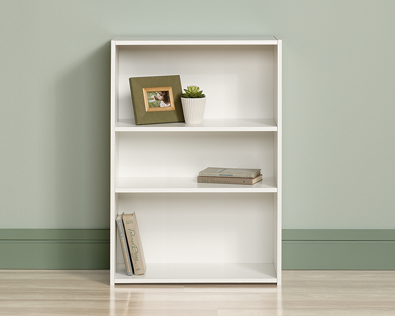 This Sauder Beginnings® 3-Shelf Bookcase is part of Express Furniture’s Bookcases / Shelving offering. This item, SKU #415541, will make a great addition to your home. Looking to organize and contain the clutter in your home? Well we’ve got just what you need with this 3-shelf bookcase from the Beginnings® collection. This good-looking bookshelf features three spacious shelves that provide you with the perfect amount of room for you to store and display a variety of different things ranging from storage bins and stacks of books to decorative plants and your array of knick-knacks. You can find a place for all your things! Two of its shelves are adjustable, giving you the ability to move them to different heights to create flexible storage options for items of all shapes and sizes. It accommodates all your needs! Its sleek design and simple style make it a great fit for any room in your home – in the living room, down the hallway, in your office or even in the bedroom. It looks good no matter where it stands! Finished in Soft White, this bookcase is the solution to your storage woes. Order your Sauder Beginnings® 3-Shelf Bookcase from Express Furniture today!
