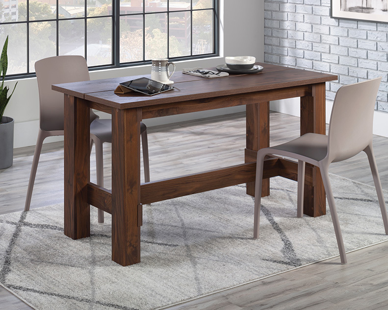 Express Furniture has updated its Other furniture line with this Sauder Boone Mountain® Kitchen/Dining Room Table in Grand Walnut, SKU #432077. 1” thick split top provides durability. Split top allows convenient cord pass-through. Accommodates four people. Grand Walnut® finish.