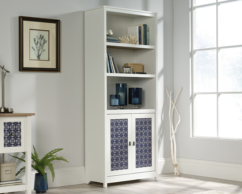 This Sauder Cottage Road® Library With Doors is part of Express Furniture’s Bookcases / Shelving offering. This item, SKU #424153, will make a great addition to your home. Style and storage all in one. Add some modern design to your home while creating the additional storage space that you need with the library with doors from the Cottage Road® collection. This library bookcase features three spacious shelves that are perfect for storing and displaying a variety of different items like stacks of books, decorative plants, your collection of knick-knacks and photos of your family and friends. These three shelves are adjustable so they can move to different heights to create flexible storage for items of all shapes and sizes. Behind its double doors, this 3-shelf bookcase features a hidden storage area for items you prefer not be seen. Each door front features a decorative tile pattern for an extra touch of detail that is sure to stand out. Finished in Soft White® with Lintel Oak® accents, this beautiful library bookcase with doors is the perfect addition for your home. Order your Sauder Cottage Road® Library With Doors from Express Furniture today!