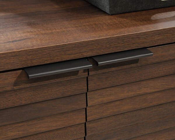 This Sauder Englewood® Library Cabinet with Doors is part of Express Furniture’s Tables / Carts offering. This item, SKU #426909, will make a great addition to your home. Is storage an issue in your home office? Create the additional storage options your workspace needs without sacrificing style with this library cabinet from the Englewood® collection. This library storage cabinet features two large doors that are detailed with louver fronts for an extra touch of eye-catching style. Behind the filing cabinet’s set of doors is a hidden storage area with a large adjustable shelf that can move to different heights, creating flexible storage for items of all shapes and sizes. The storage space in the base cabinet is perfect for holding stacks of books, work binders, magazines, and organizing bins. Its top surface provides added space for items like a wireless printer, decorative plants, or a table lamp. Finished in Spiced Mahogany™, this beautiful library cabinet will have your office feeling organized in no time. Order your Sauder Englewood® Library Cabinet with Doors from Express Furniture today!